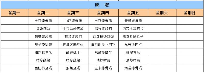 當前位置:首頁 > 后勤服務(wù) > 每周食譜