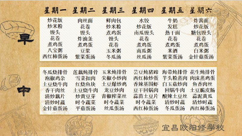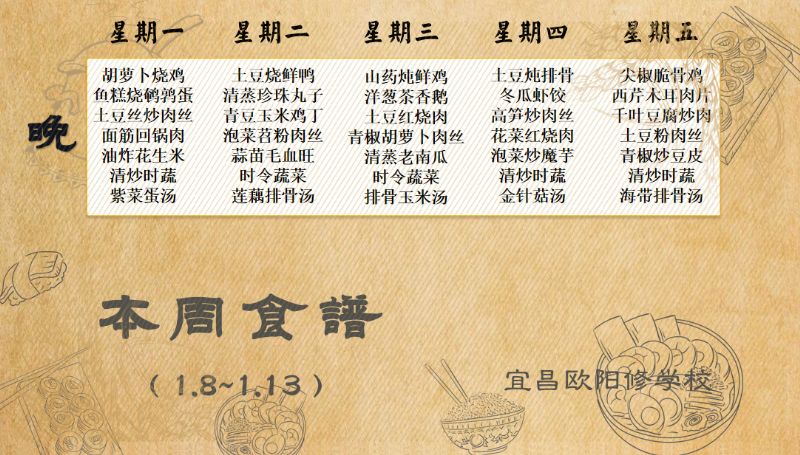 宜昌歐陽修學(xué)校每周食譜(1月8日至1月13日)