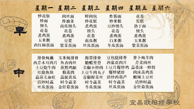 宜昌歐陽修學(xué)校每周食譜(2月19日至2月23日)