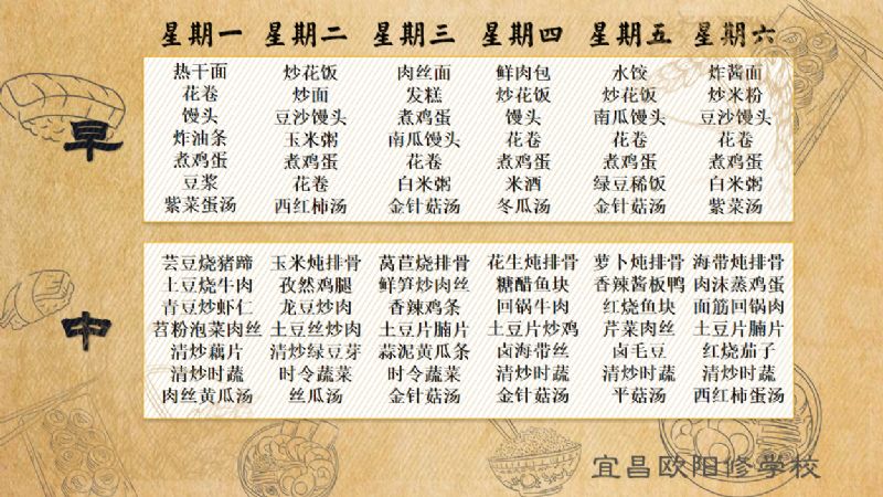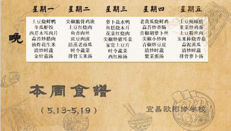 宜昌歐陽(yáng)修學(xué)校每周食譜(5月13日至5月19日)