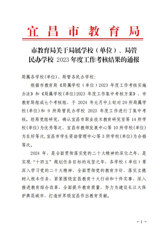 2024年,我校將繼續(xù)深入學(xué)習(xí)黨的二十大精神,全面貫徹黨的教育方針,落實立德樹人的根本任務(wù),緊緊圍繞宜昌教育十大行動和十件實事,深入推進教育綜合改革,全面提升教育質(zhì)量,我校將不負社會各界期望,繼續(xù)利用各類教育資源,解決好存在的問題,為學(xué)生的終身發(fā)展負責(zé),為辦人民滿意的教育持續(xù)奮進!