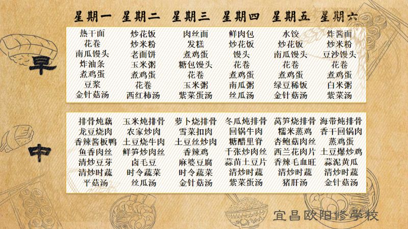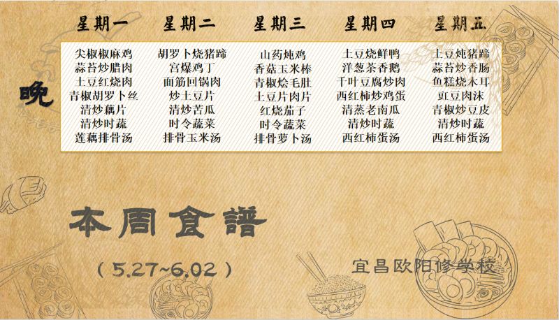 宜昌歐陽修學(xué)校每周食譜(5月27日至6月2日)