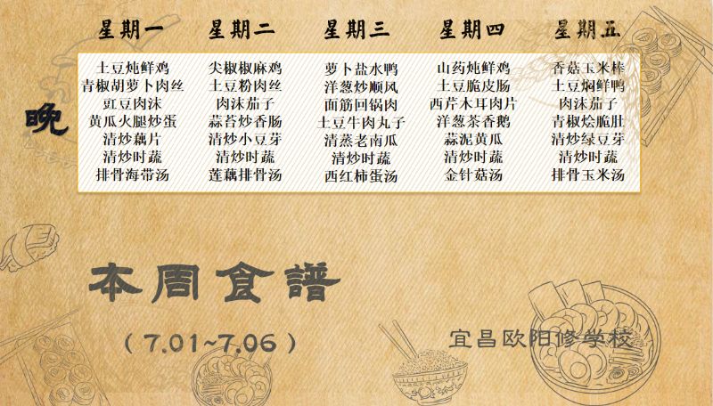 宜昌歐陽修學(xué)校每周食譜(7月1日至7月6日)
