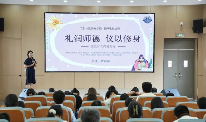 教師的職業(yè)形象直接影響到學(xué)生和家長(zhǎng)對(duì)學(xué)校的整體印象。最后,學(xué)校領(lǐng)導(dǎo)對(duì)全體教師進(jìn)行禮儀培訓(xùn),黃校長(zhǎng)淡雅從容,娓娓道來,本身即是教師禮儀一章的最好注解。她結(jié)合實(shí)例,談到了教師禮儀的方方面面?!岸Y潤(rùn)師德,儀以修身”,教師是鏡子,學(xué)生是教師的影子,優(yōu)秀教師的12種素質(zhì)令人印象深刻,老師們獲益良多!