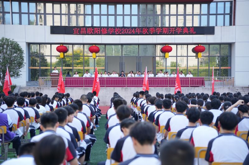 云天收夏色,木葉動秋聲。9月1日上午,宜昌歐陽修學(xué)校2024級新生開學(xué)典禮暨優(yōu)秀學(xué)生表彰大會在操場隆重舉行。秋霜未起,柔光已至。清晨秩序井然的操場,迎來了朝氣蓬勃的2024級新生。恰同學(xué)少年,風(fēng)華正茂,莘莘學(xué)子,上下求索,為歐校注入嶄新活力。伴隨著雄壯的國歌聲五星紅旗冉冉升起,開學(xué)典禮正式拉開了序幕。
