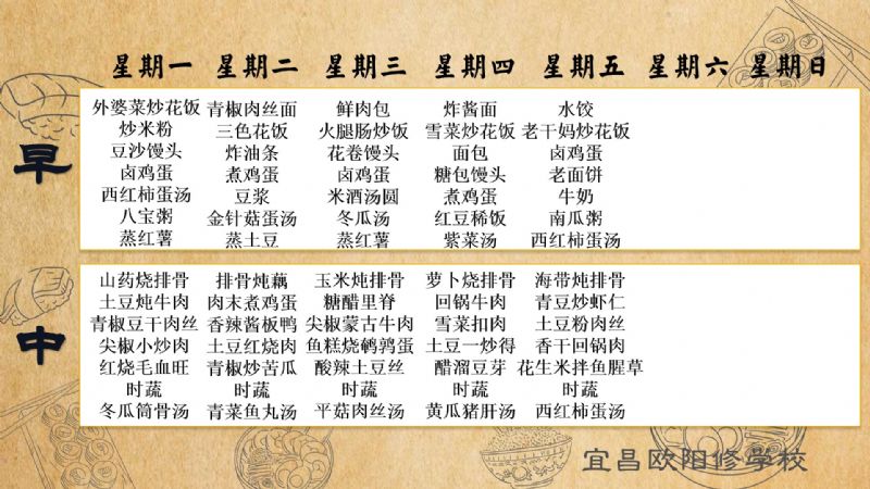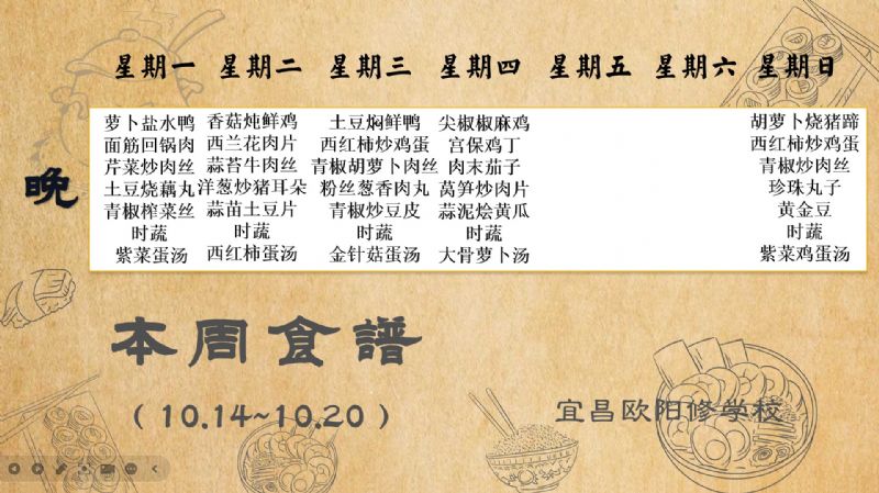 宜昌歐陽修學(xué)校每周食譜(10月14日至10月20日)