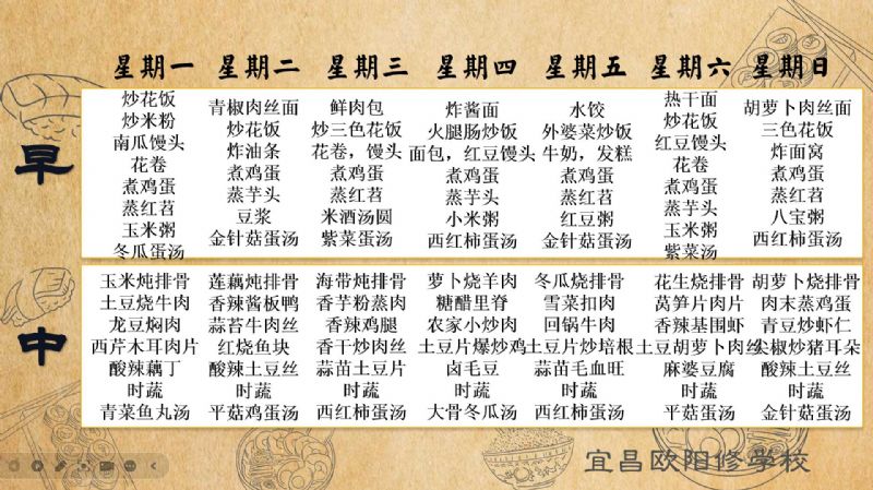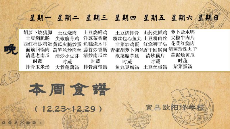 宜昌歐陽(yáng)修學(xué)校每周食譜(12月23日至12月29日)
