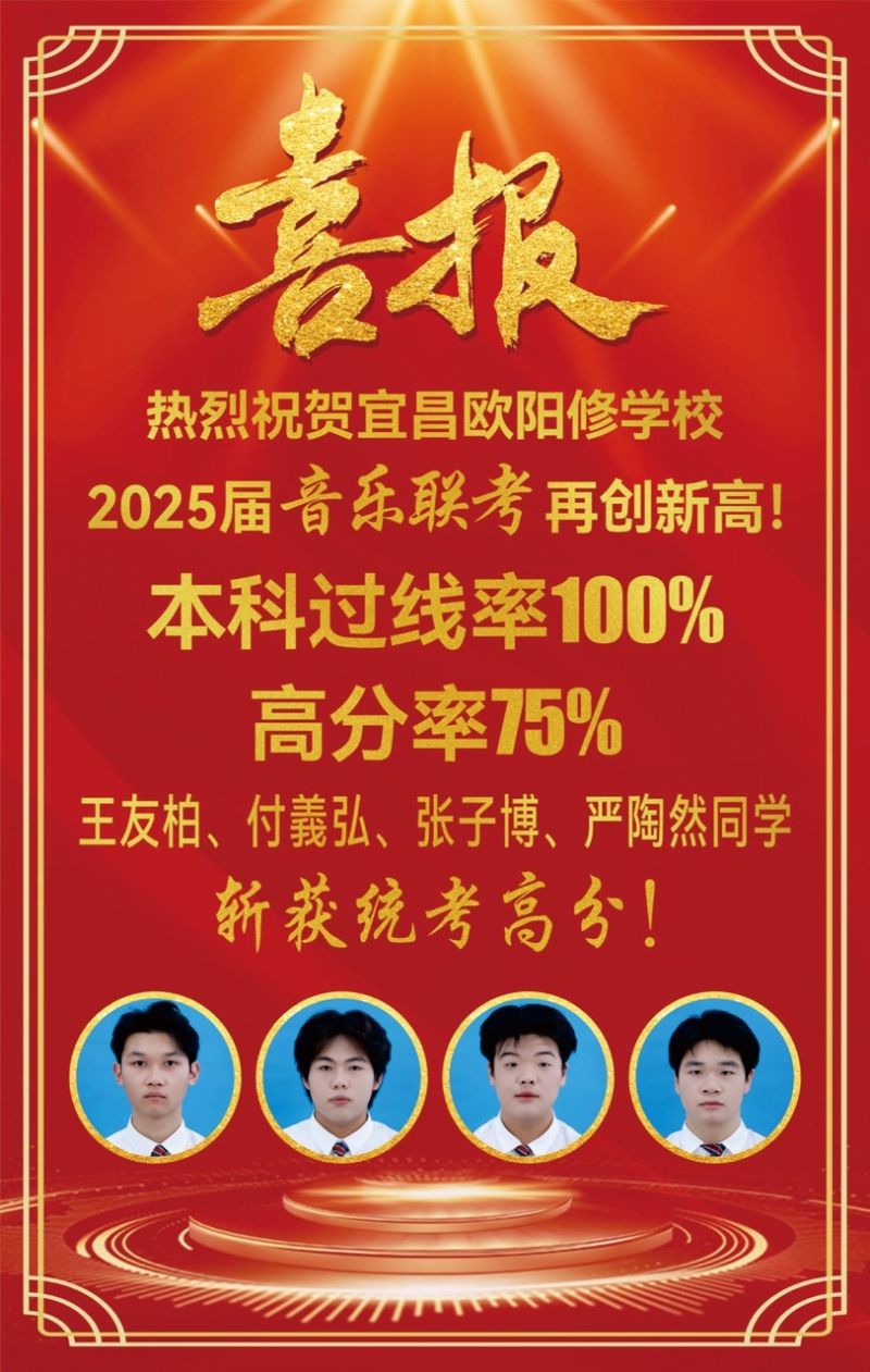喜 報(bào) | 熱烈祝賀宜昌歐陽(yáng)修學(xué)校2025屆音樂(lè)聯(lián)考再創(chuàng)新高!