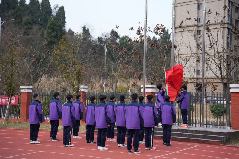 伴隨著激昂有力的《義勇軍進行曲》,國旗班的同學們身著整潔的制服,身姿挺拔如松,步伐矯健有力。升旗手目光堅毅,雙手緊握國旗一角,隨著國歌激昂的旋律,奮力將國旗高高揚起,恰似燃燒的火炬,瞬間點燃了在場每一個人心中奮進的火種,驅(qū)散慵懶,喚醒朝氣。
