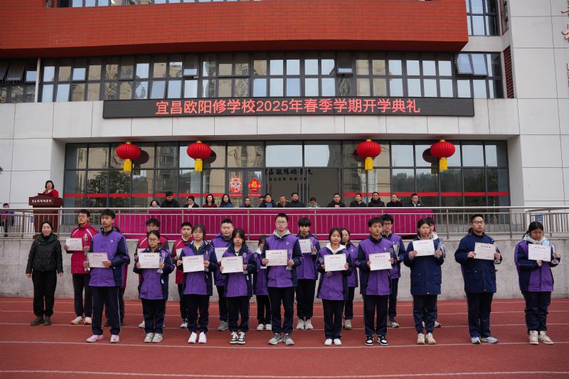 徐校長莊重宣讀表彰決定,那些在過去一學期里勤奮學習、積極進取的學生名字被一一念出。每一個名字背后,都是一段努力奮斗的故事。學生們滿懷自豪地走上領獎臺,手中的獎杯和獎品在陽光照耀下熠熠生輝,他們成為同學們新學期奮進路上的榜樣。