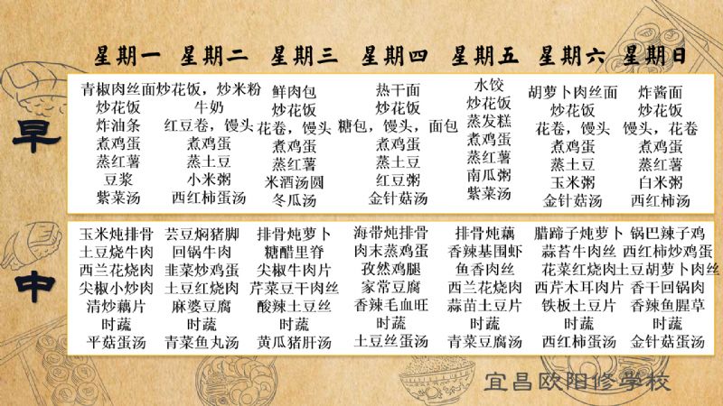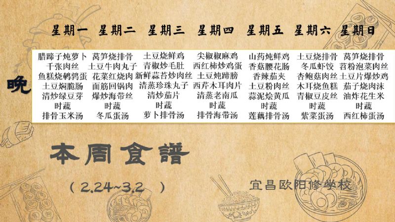 宜昌歐陽修學(xué)校每周食譜(2月24日至3月2日)