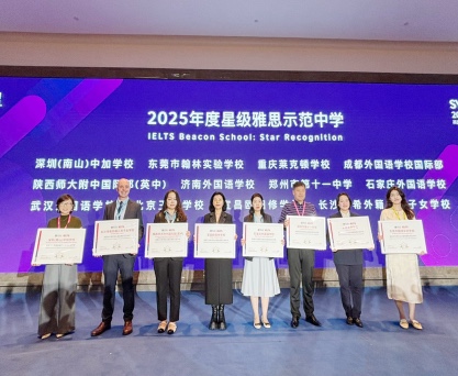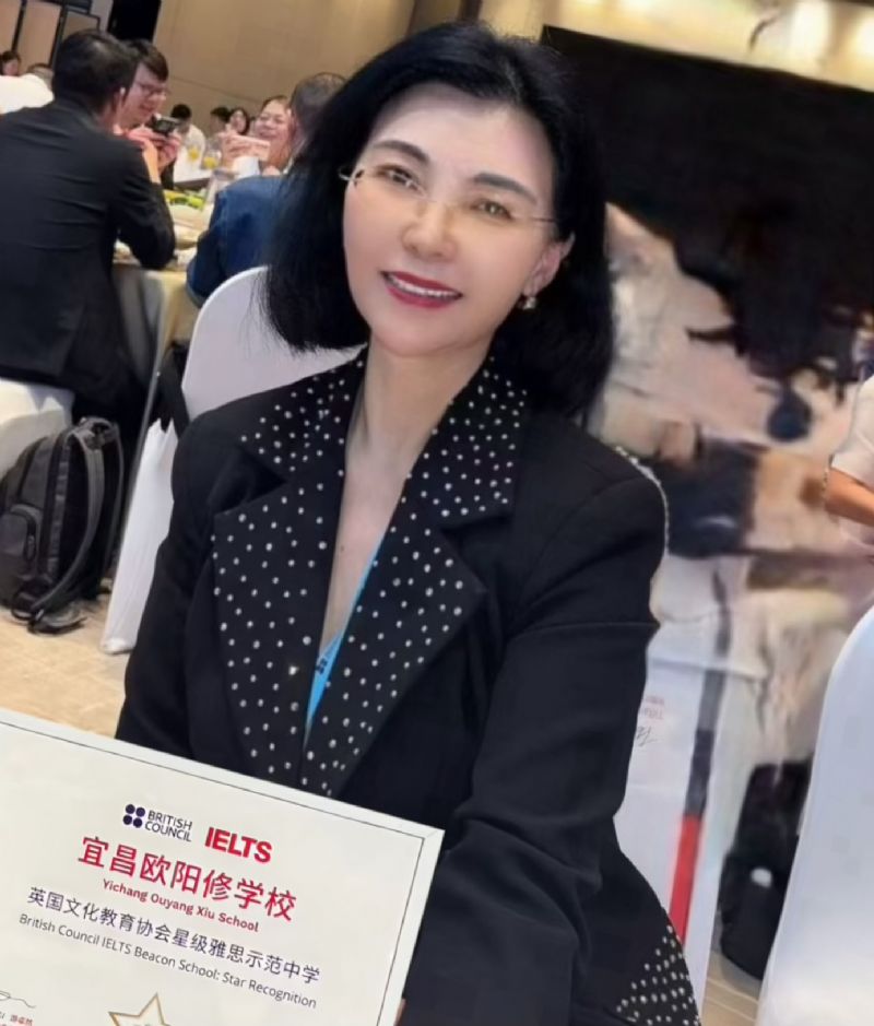 4月9日,宜昌歐陽修學(xué)校獲得BritishCouncil英國文化教育協(xié)會(huì)“星級雅思示范中學(xué)”授牌。我校國際高中負(fù)責(zé)人李翠銀主任代表學(xué)校領(lǐng)獎(jiǎng)。