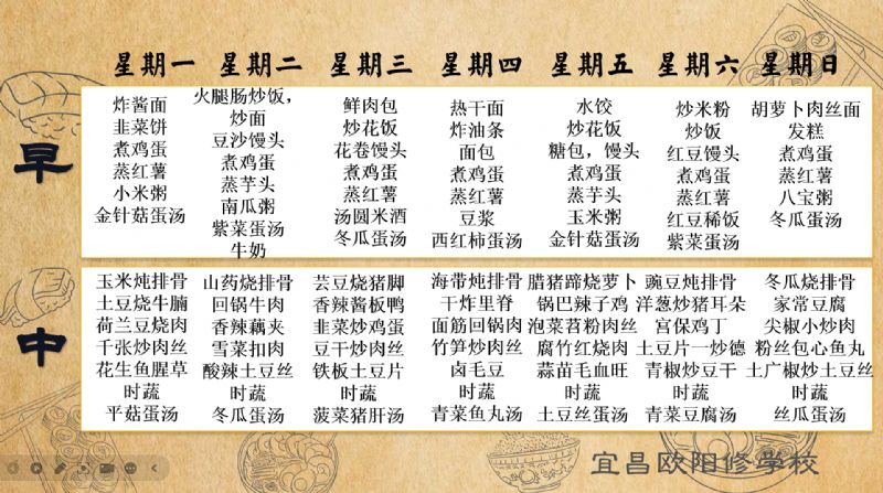 宜昌歐陽修學(xué)校每周食譜(4月21日至4月27日)