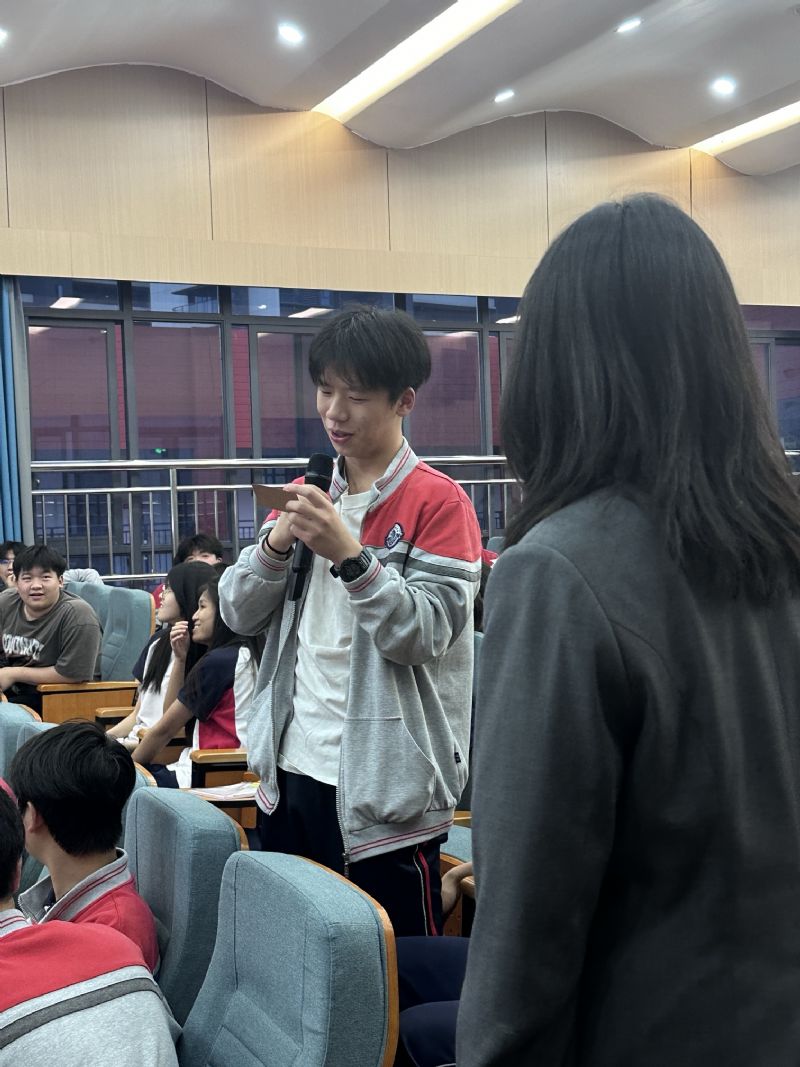 整個活動分五個環(huán)節(jié):1、精典永流傳-英語詩歌朗誦;2、AI時代-共讀世界—-英語謎語翻轉(zhuǎn); 3、腹有詩書氣自華-高考實(shí)力秀一秀; 4、書簽漂流, 賦能高考; 5、心有靈犀一點(diǎn)通,閱讀賦能。全場氣氛非常熱烈, 同學(xué)們爭先恐后舉手搶答題目, 展示自己的閱讀功底和知識儲備量,每個環(huán)節(jié)都給人一種八仙過海各顯神通的氛圍感,精彩紛呈。在書簽漂流環(huán)節(jié), 高三每位同學(xué)都收到了來自國際高中學(xué)生的高考寄語,感到特別欣慰。 李翠銀主任隆重介紹了這此書簽漂流的主要意義-點(diǎn)燃夢想! 最后師生們一起朗誦:少年當(dāng)有凌云志、萬里長空競風(fēng)流! 愿你歷經(jīng)高考, 歸來仍是少年!