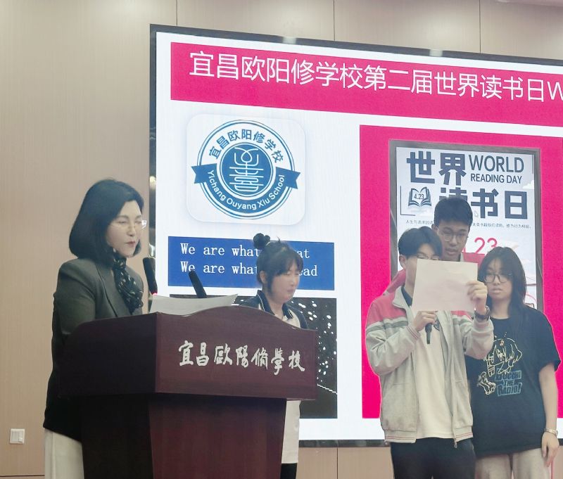 2025年4月23日,宜昌歐陽修學(xué)校國際高中和普通高中高三年級一起舉辦了“第二屆世界讀書日活動(World Reading Day )”。國際高中李翠銀主任用中、英文雙語主持本次活動, 陶三發(fā)校長發(fā)表了熱情洋溢的講話,雅思專家Helena用標(biāo)準(zhǔn)的英式英語介紹World Reading Day 影響力 。高三年級全體師生參與了這場與書香的浪漫邂逅。