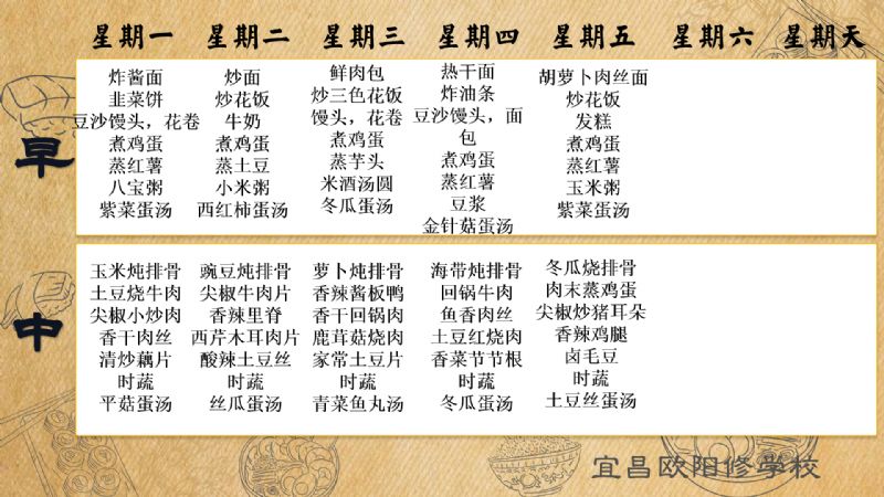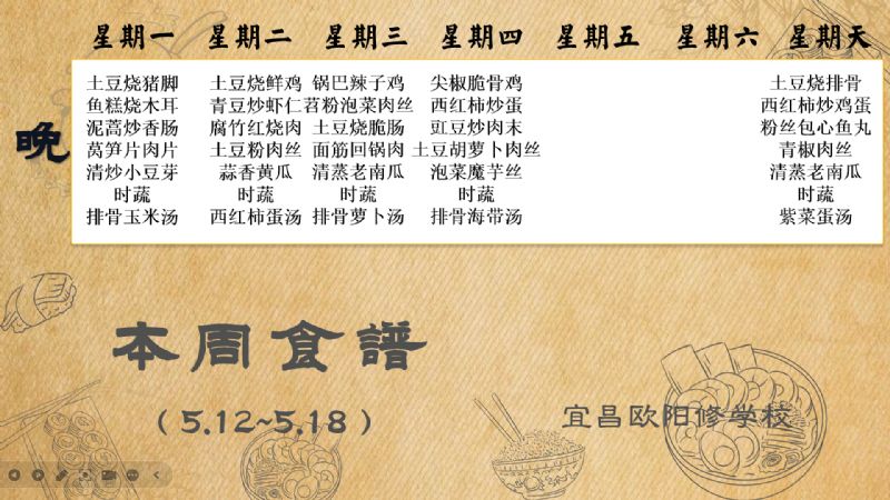 宜昌歐陽(yáng)修學(xué)校每周食譜(5月12日至5月18日)