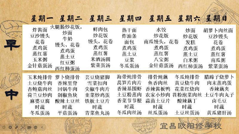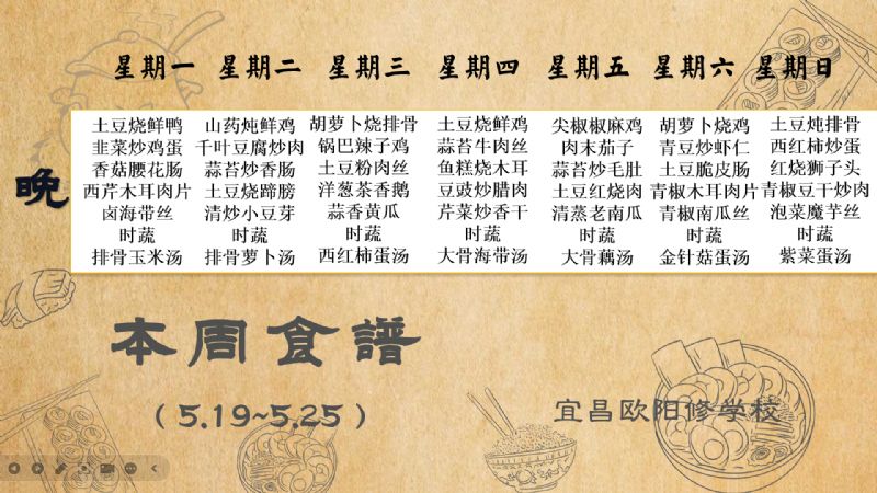 宜昌歐陽(yáng)修學(xué)校每周食譜(5月19日至5月25日)