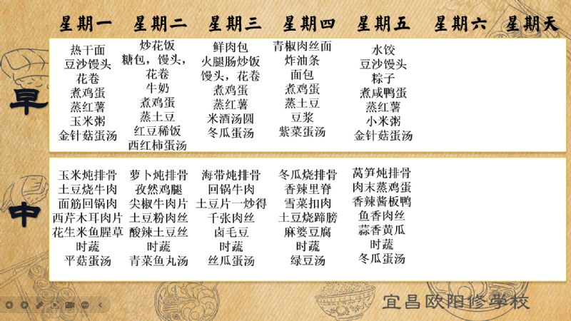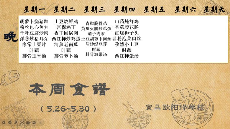 宜昌歐陽(yáng)修學(xué)校每周食譜(5月26日至5月30日)