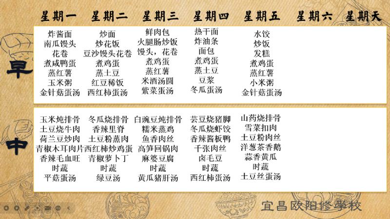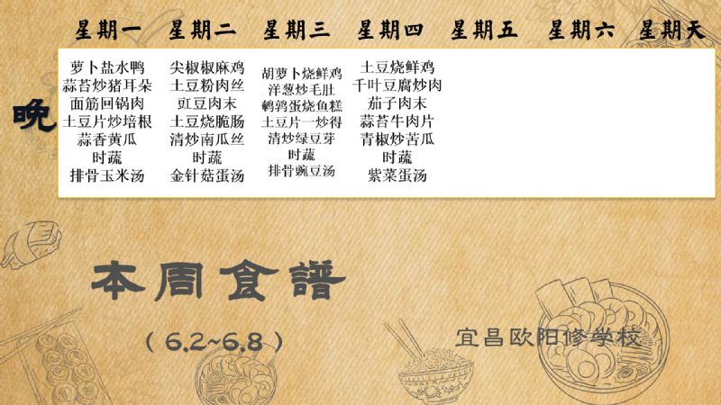 宜昌歐陽(yáng)修學(xué)校每周食譜(6月2日至6月8日)