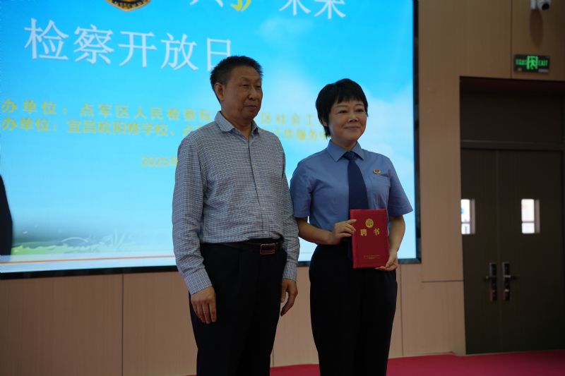 隨后,徐校長為點軍區(qū)檢察院陳露檢察官頒發(fā)法治副校長聘書。這一重要舉措標志著學校與司法機關的合作邁上新臺階,將進一步推動法治教育常態(tài)化、專業(yè)化發(fā)展,為構建平安校園、護航學生健康成長提供更有力的法治保障。