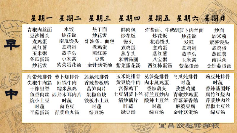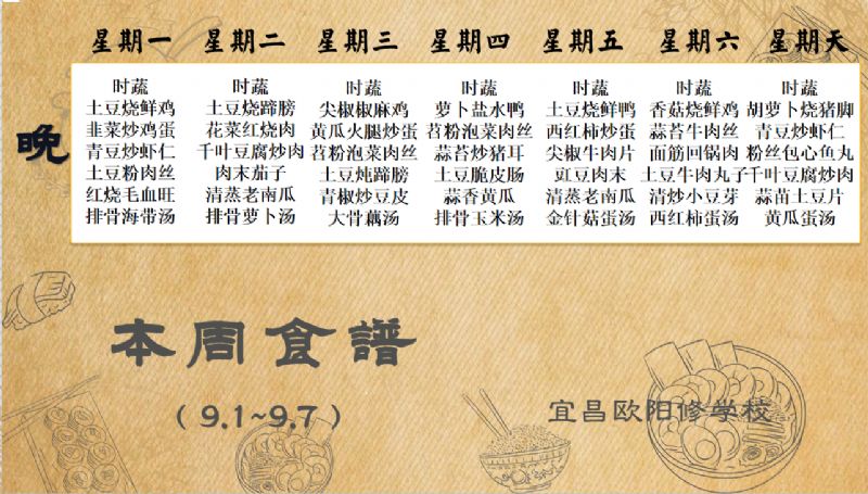 宜昌歐陽修學(xué)校每周食譜(9月1日至9月7日)
