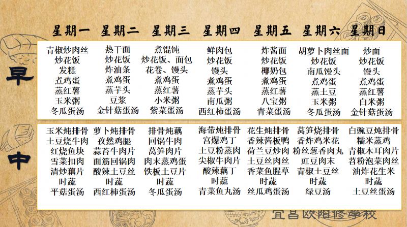 宜昌歐陽(yáng)修學(xué)校每周食譜(9月22日-9月28日)