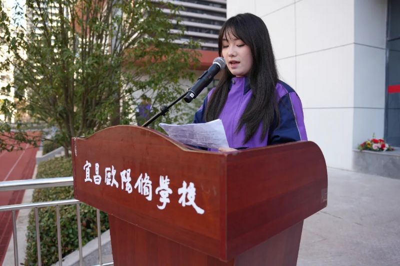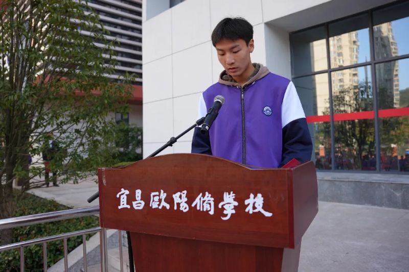 運(yùn)動員代表303班曾昱文神情堅毅地發(fā)表感言并宣誓,承諾將嚴(yán)格遵守比賽規(guī)則,尊重對手、尊重裁判、尊重觀眾,以飽滿的熱情、昂揚(yáng)的斗志全力以赴,賽出風(fēng)格、賽出水平,展現(xiàn)歐陽修學(xué)子的良好風(fēng)貌。