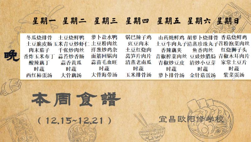 宜昌歐陽修學(xué)校每周食譜(12月1日-12月7日)